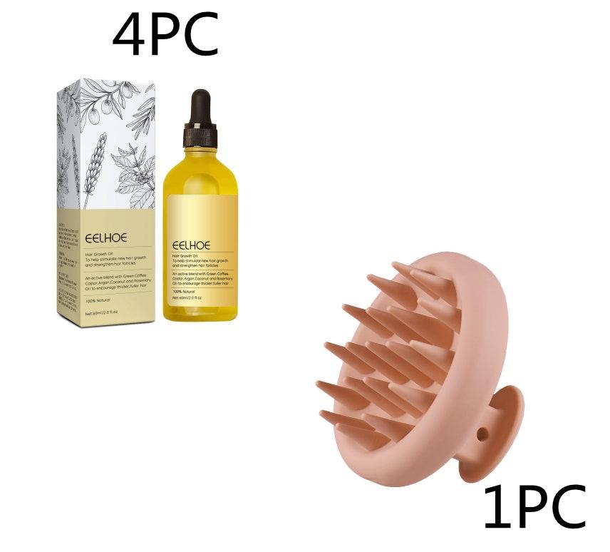 Eelhoe Thrive Hair Oil with packaging, bottle, and before/after images on a white background