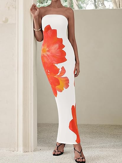 • Features: Designed with a floral pattern, this long dresses for women comes with a strapless tube top,bodycon tight fit,flower pattern,and stylish slit, adding a modern twist to your classic look.Its corset-like fit accentuates your curves, offering a blend of elegance and sensuality.