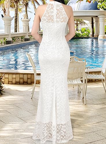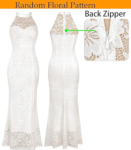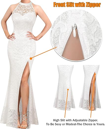 • Style: Halter Neck, Lace Illusion Sweetheart Design, Slim Fit, Maxi Length, A Conceal Back Zipper makes it easy to put on and take off, Adjustable High Zipper Slit [The adjustable zipper allows you to zip or unzip the slit so you can decide how much leg you want to show.]