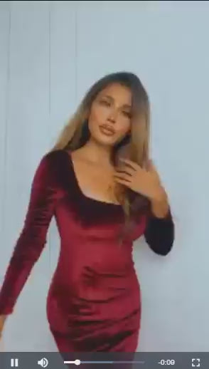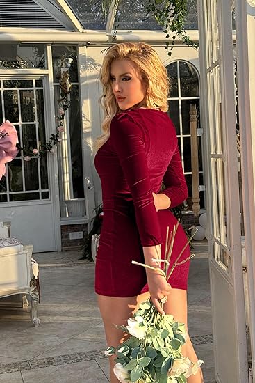 Womens Sexy Velvet Long Sleeve Bodycon Elegant Mini Party Dress.