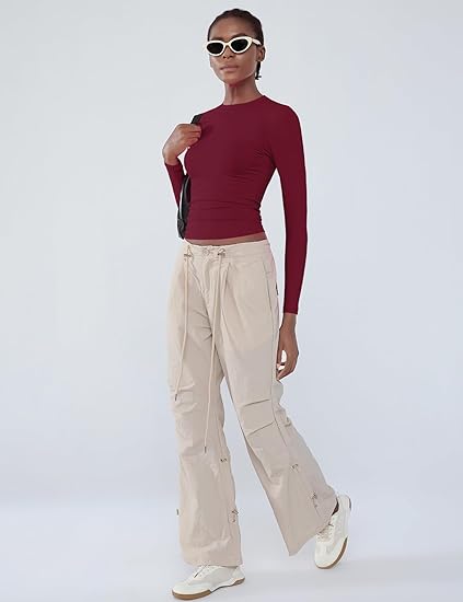 • With their stretchy slim fitted silhouette, these casual plain shirts are ideal to match with cargo pants, shorts, jeans, skirts, yoga pants for a casual yet fashionable Y2K look